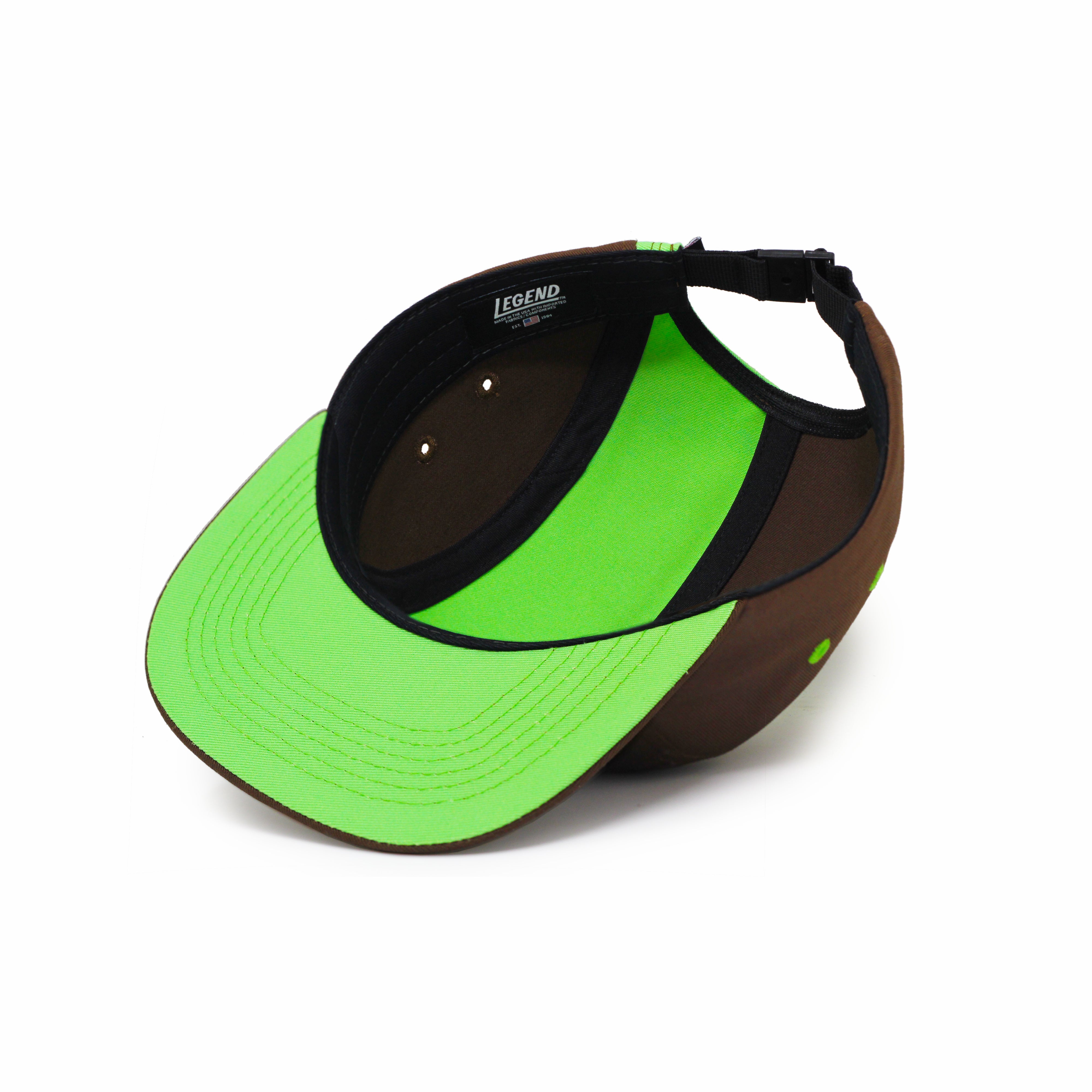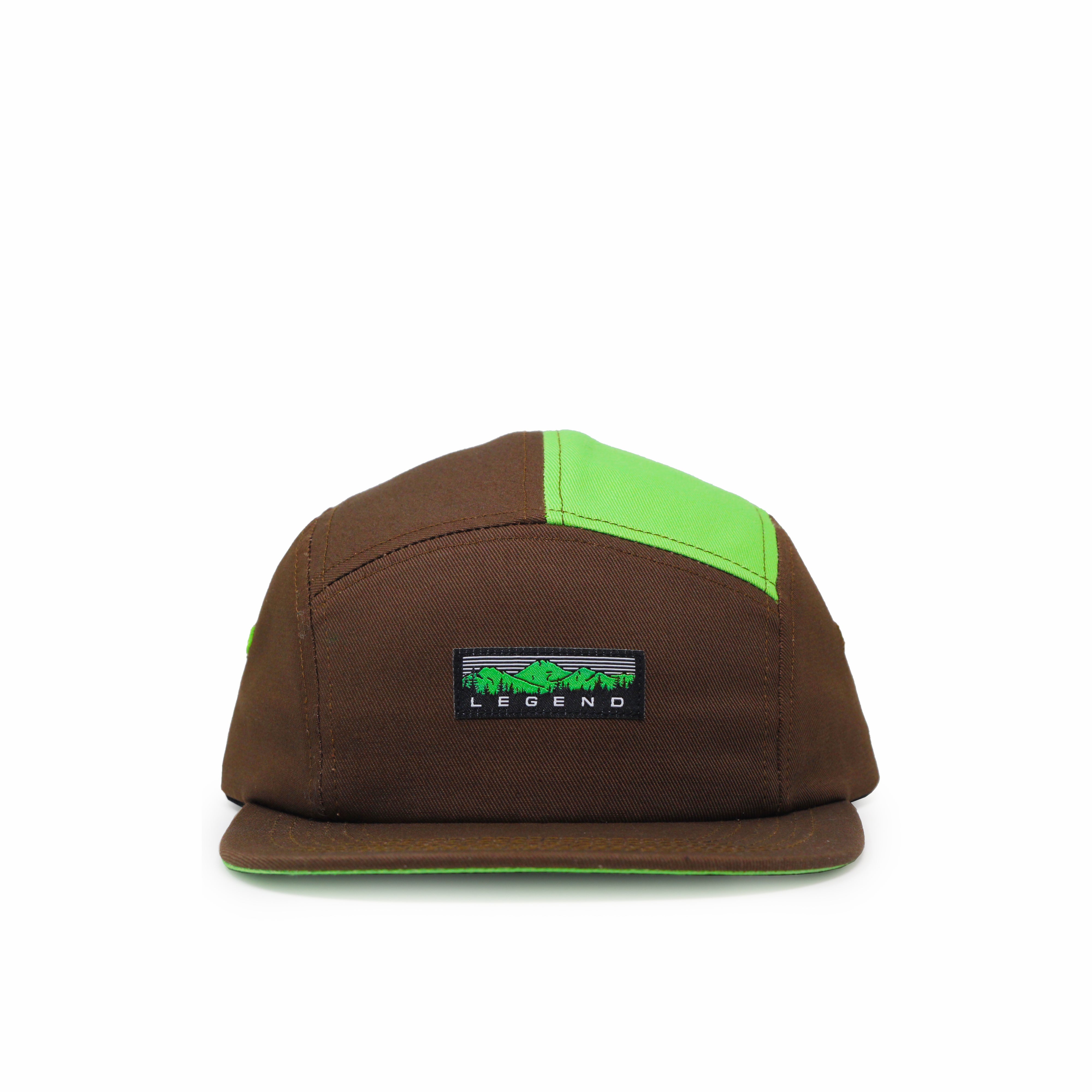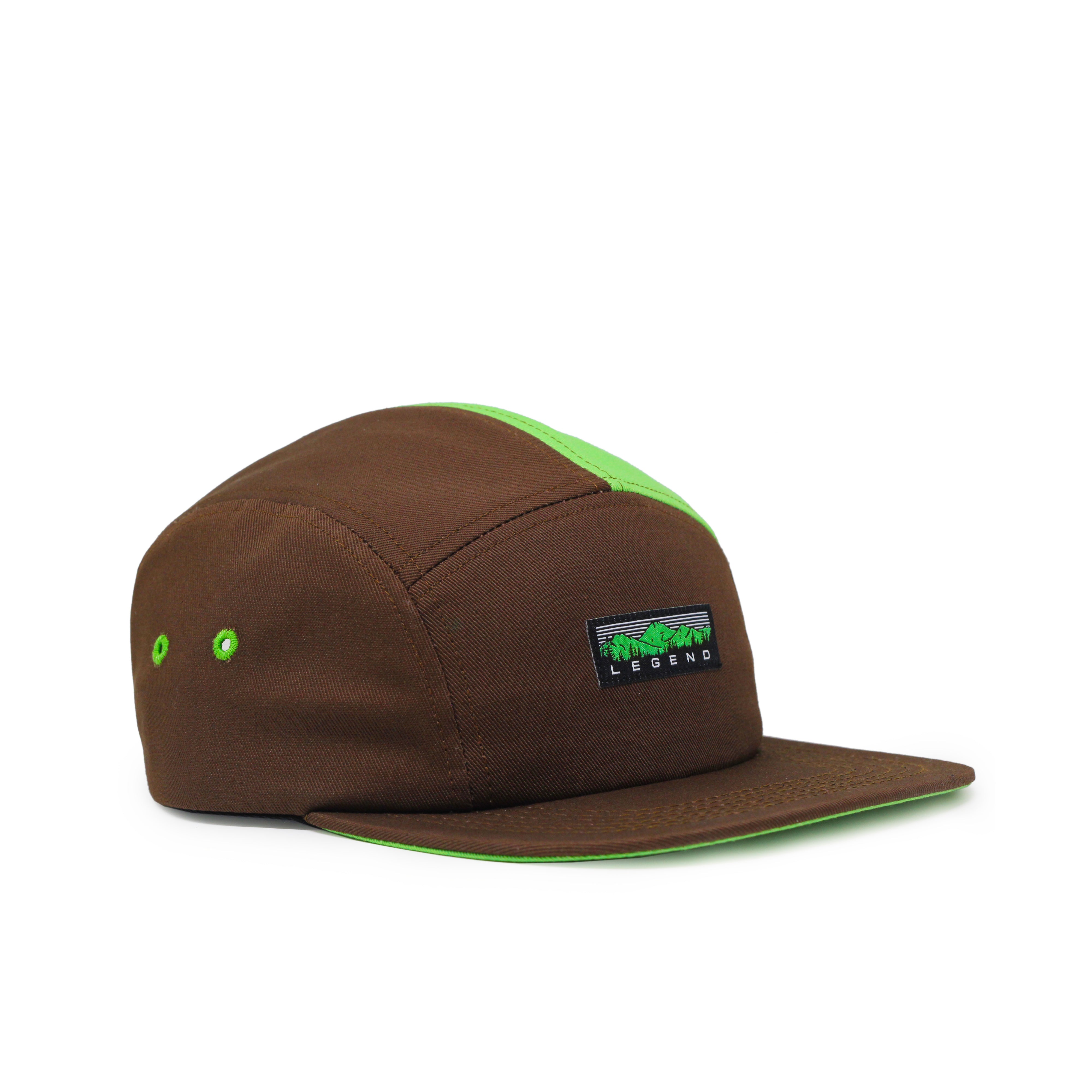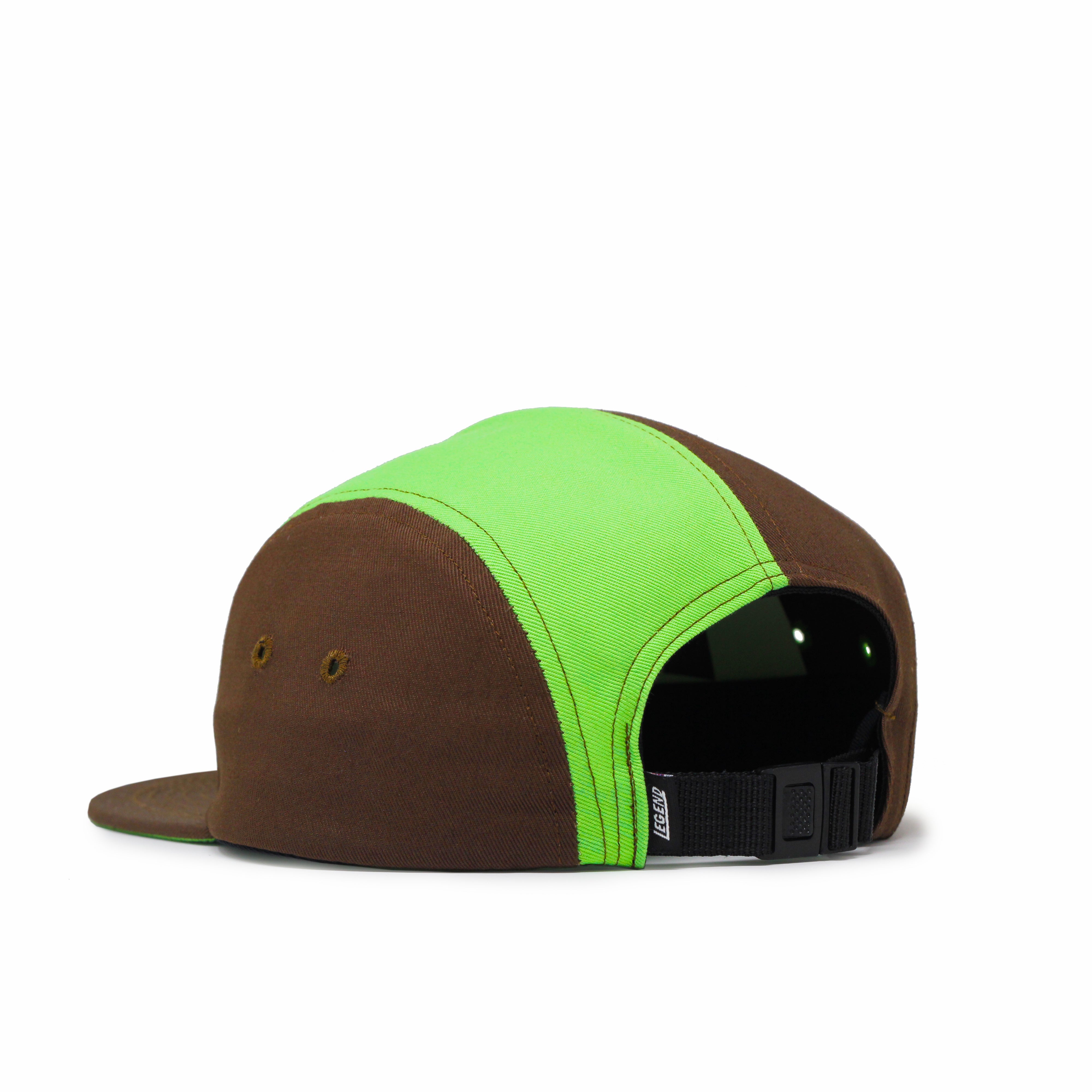 We made this limited-release camper with a mashup of lime and nutmeg cotton chino fabric paired with our Emerald Mountains woven emblem. The cap is finished with our signature inner lining and secures with an adjustable clipback closure.